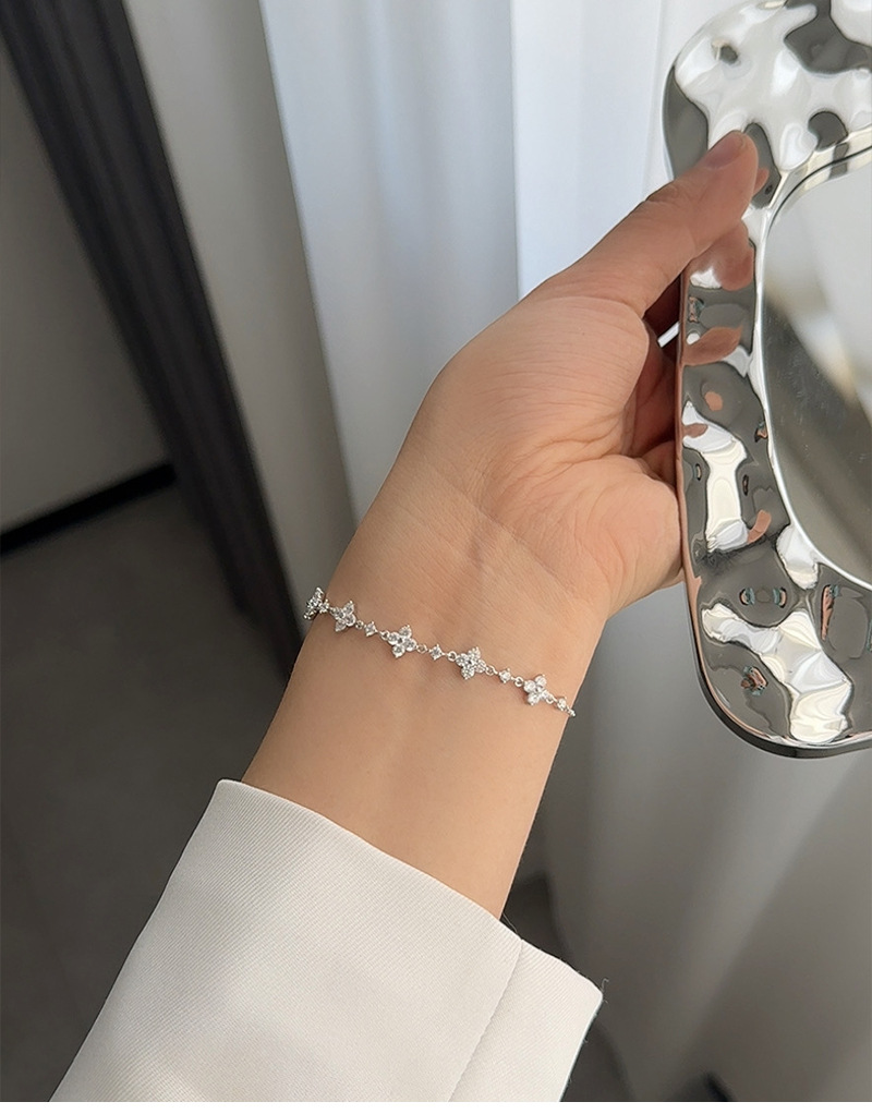 925 Silver Zircon Five-Flower Light Luxury High-End Minimalist Niche Design Hand Jewelry