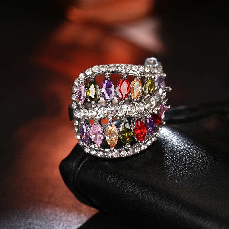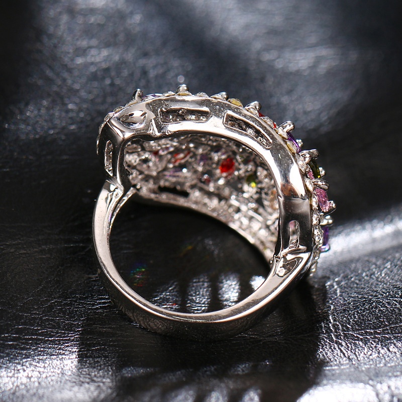 Women's Elegant And Versatile Zircon Ring With Colorful Leaf Design